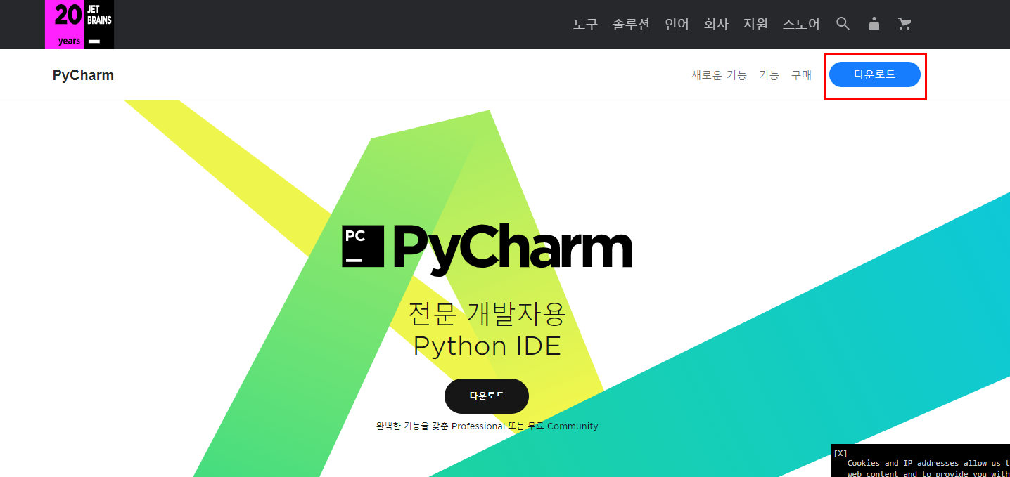 2.파이참 아이콘 선택해서 URL진입 후 다운로드 선택