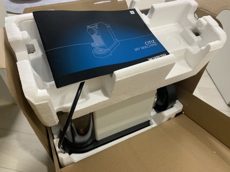 네스프레소 시티즈 박스를 개봉하면 이렇게 스티로폼으로 안전하게 밀봉되어있어요