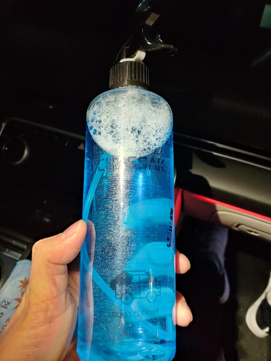 이제 카싹 제품으로 유리세정제를 쏵 뿌렸어요.