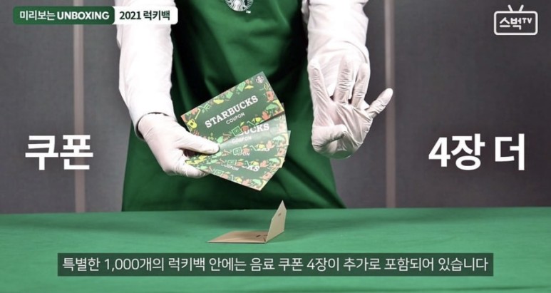 이벤트형식으로 총 1000개의 스타벅스 럭키백 안에는 음료쿠폰 4장이 추가로 들어가 있다고 하네요!