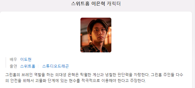 저도 이은혁 캐릭터가 바로 죽을 거 같진 않아 무슨 괴물이 될까 찾아보았는데,