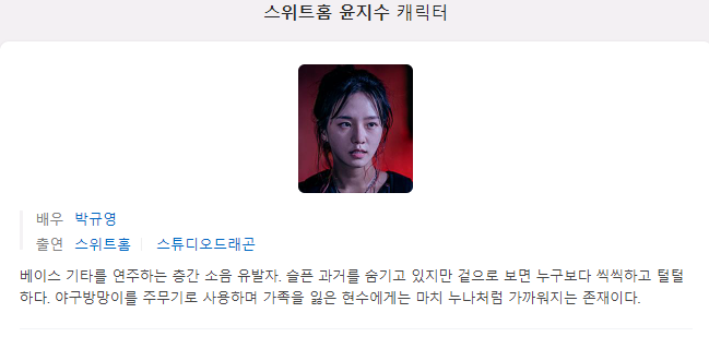 그리고 스위트홈에서 가장 떡상한 배우라고 해도 과언이 아닌 김남희 배우 입니다.