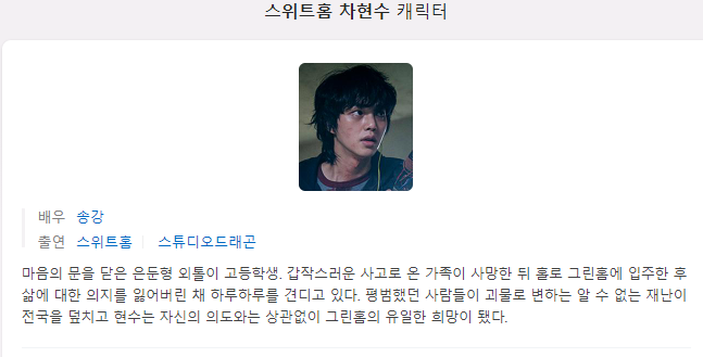 스위트홈 등장인물 소개입니다.