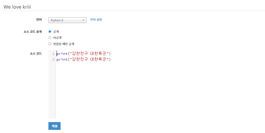 | 백준 BAEKJOON #2557 Python 파이썬 (0) | 2021.10.10 |