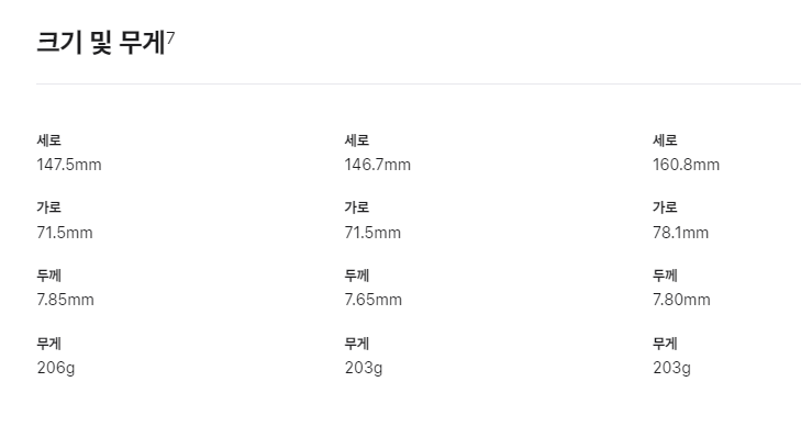 나머지 spec은 거의 동일합니다. 저장용량도 같음