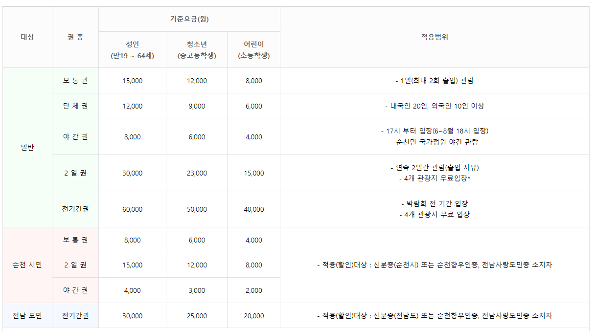 순천뿐만 아니라 다른 지역 행사와 맞물려서 할인도 있습니다