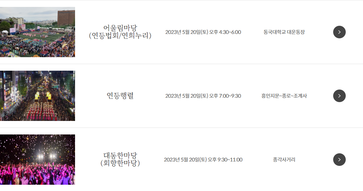 어울림마당,연등행렬,대동한마당이 이루어집니다.