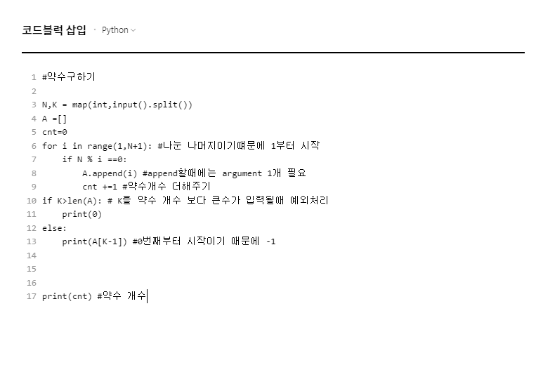 | 백준 2501번 파이썬 약수구하기 (0) | 2023.05.17 |