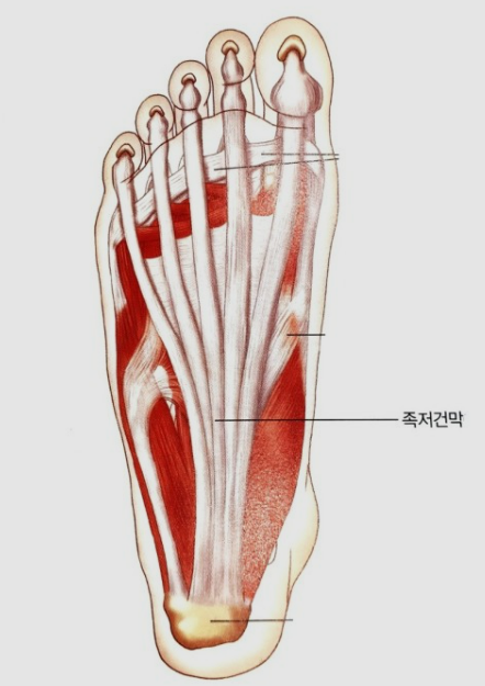 근저족막염은 발아래에 있는 근막에 생긴 염증입니다.발뒤꿈치 뻐에서 시작되서 5개 발가락의 시작부분을 연결 하는