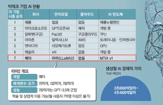 메타의 라마2 오픈소스전략에 대해서 과거 구글이 애플과 경쟁을 위해 안드로이드운영시스템을 오픈소스로 내놓는것과 비교할수 있겠네요.