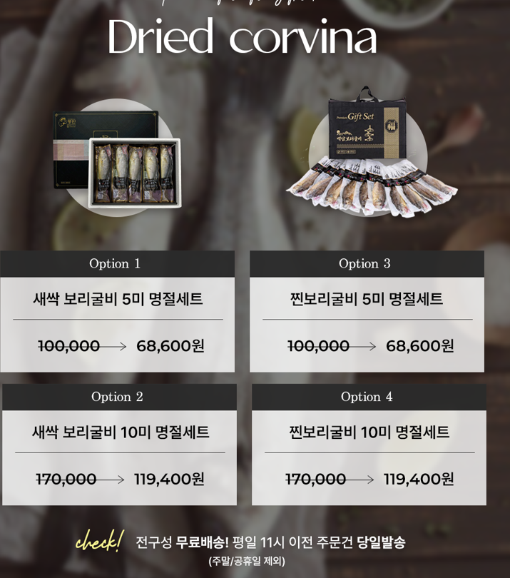 저는 전자레인지로도 요리가 가능한 찐보리굴비를 주문했는데요.