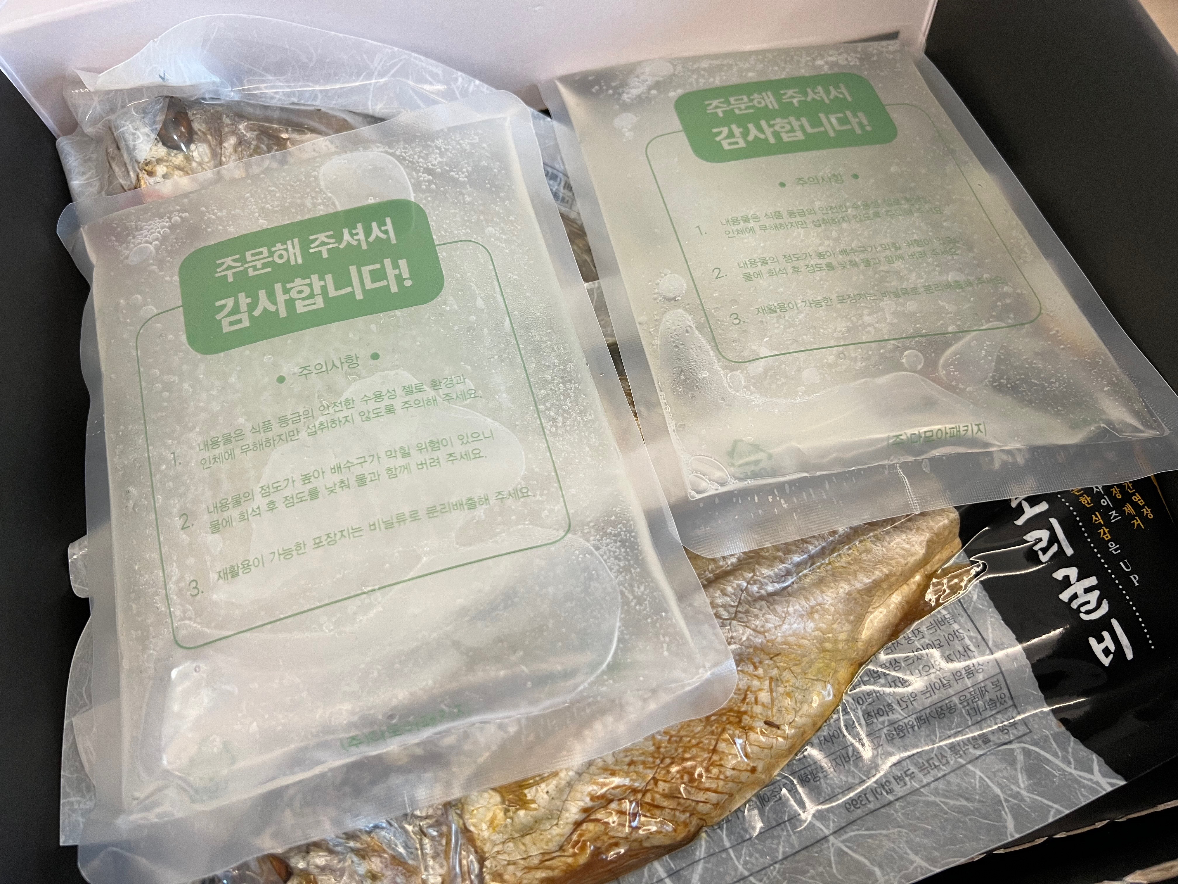 여름이고 생선이기에 얼음팩에 같이 포장되어서 도착했습니다.