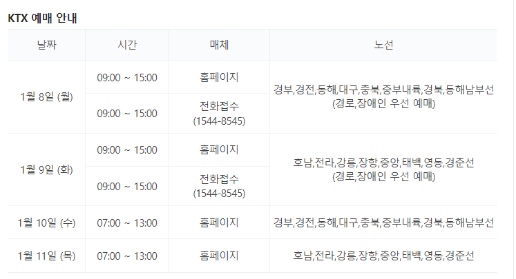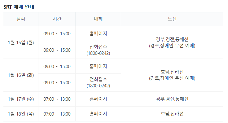 설날 SRT 예매 대상 기간 :24년 2월8일(목요일) - 2월12일(월요일)