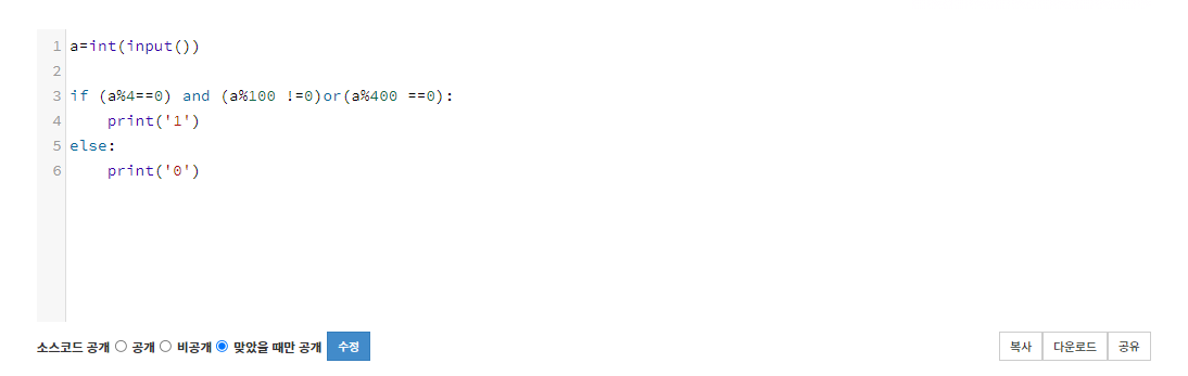백준 BAEKJOON #2753 윤년 Python 파이썬